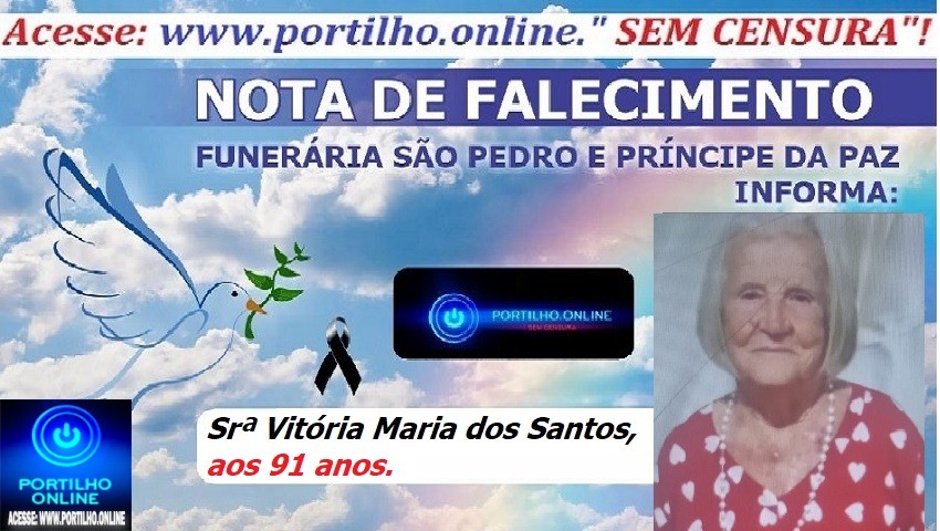 👉 LUTO… ⚰😔🕯😪😭FUNERÁRIA SAO PEDRO E PRÍNCIPE DA 🕊PAZ🕊🕊 INFORMAM.. . Faleceu em Patrocínio-MG a Srª Vitória Maria dos Santos , aos 91 anos.