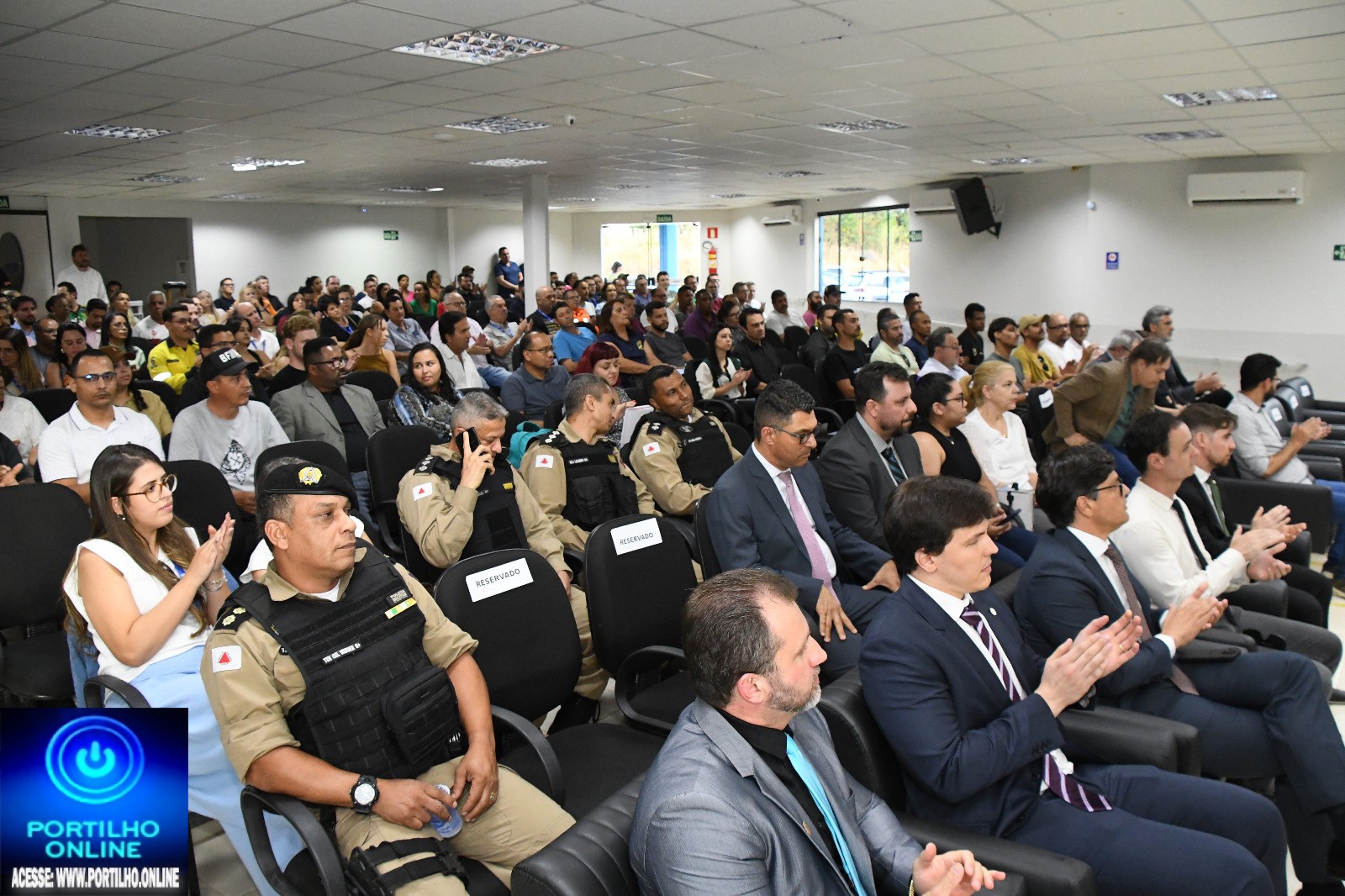 O evento contou com a presença de várias autoridades e do prefeito Gustavo Brasileiro. Foi um sucesso, com uma casa lotada e debates produtivos sobre a importância da segurança pública.