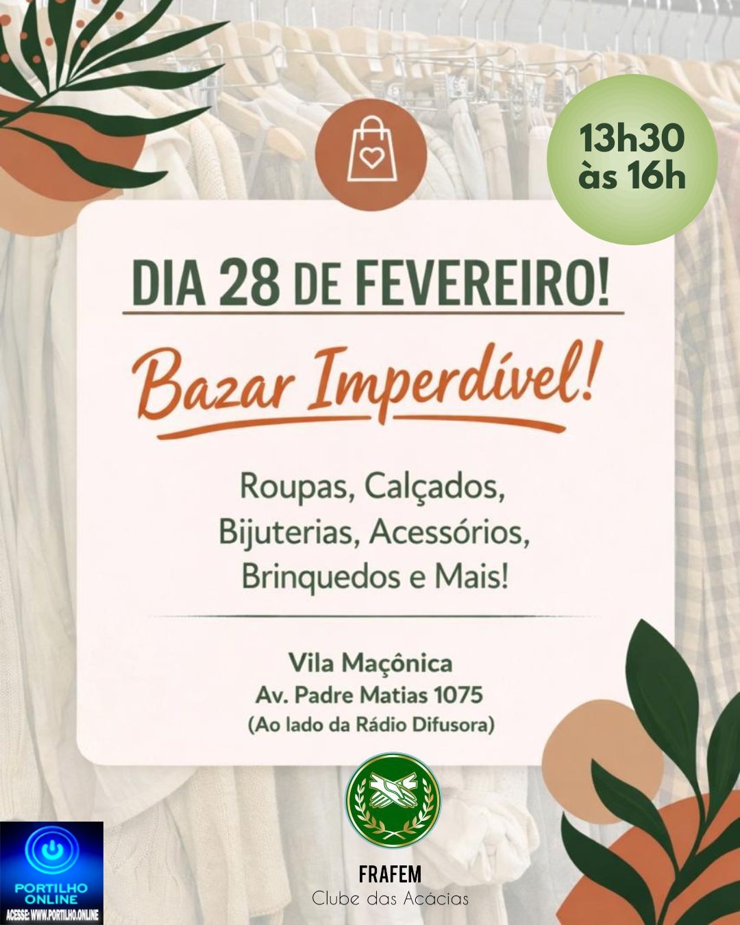 FRAFEM – Clube das Acácias realiza Bazar Imperdível neste sábado (28)