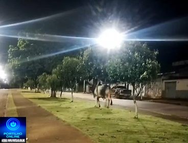 Moradores questionam onde está a fiscalização para evitar que animais desse porte circulem livremente pela cidade e cobram providências para que o boi seja recolhido e mantido em local adequado.