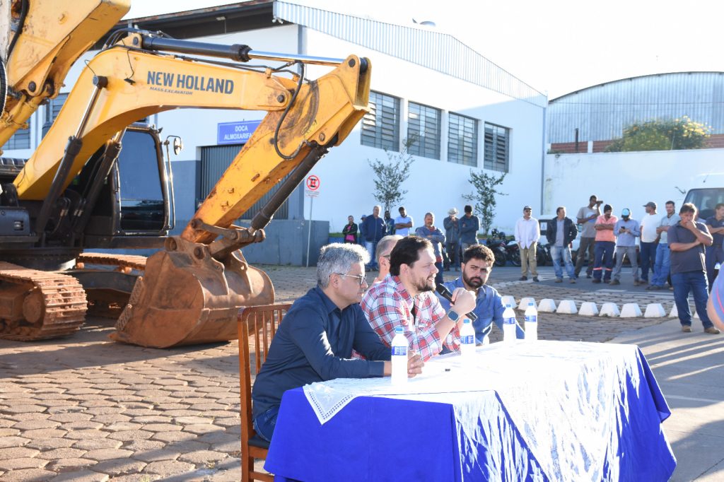 O Governo Municipal apresentou, nesta segunda-feira (13), o novo maquinário da Secretaria de Obras, ampliando a estrutura disponível para os serviços de recuperação e manutenção das estradas rurais. Ao todo, cerca de 40 equipamentos passam a integrar a frota, entre retroescavadeiras, pás carregadeiras e caminhões.
