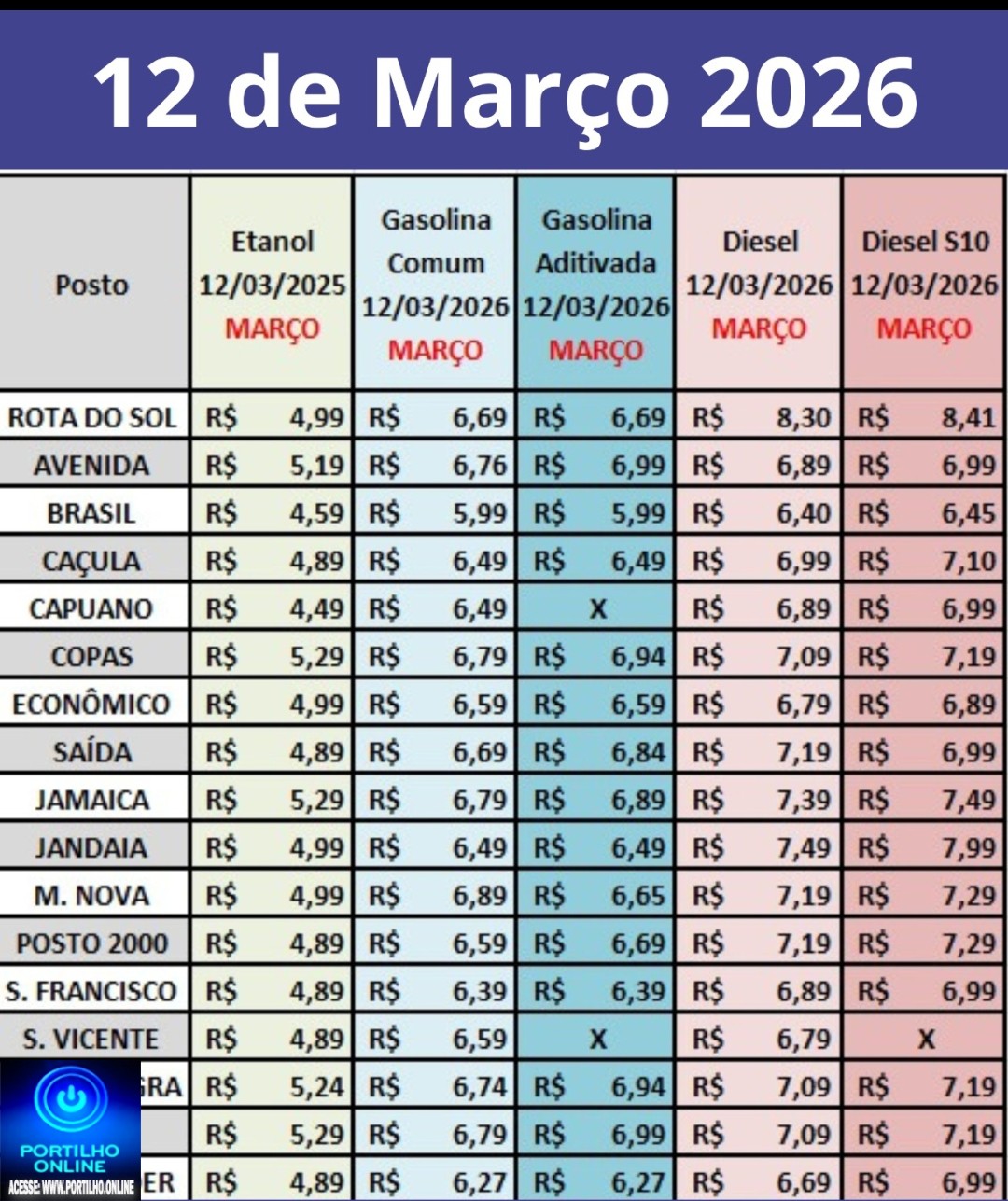 O diesel foi o mais impactado: um posto registrou aumento de R$ 2,34 no diesel comum e R$ 2,42 no S10.