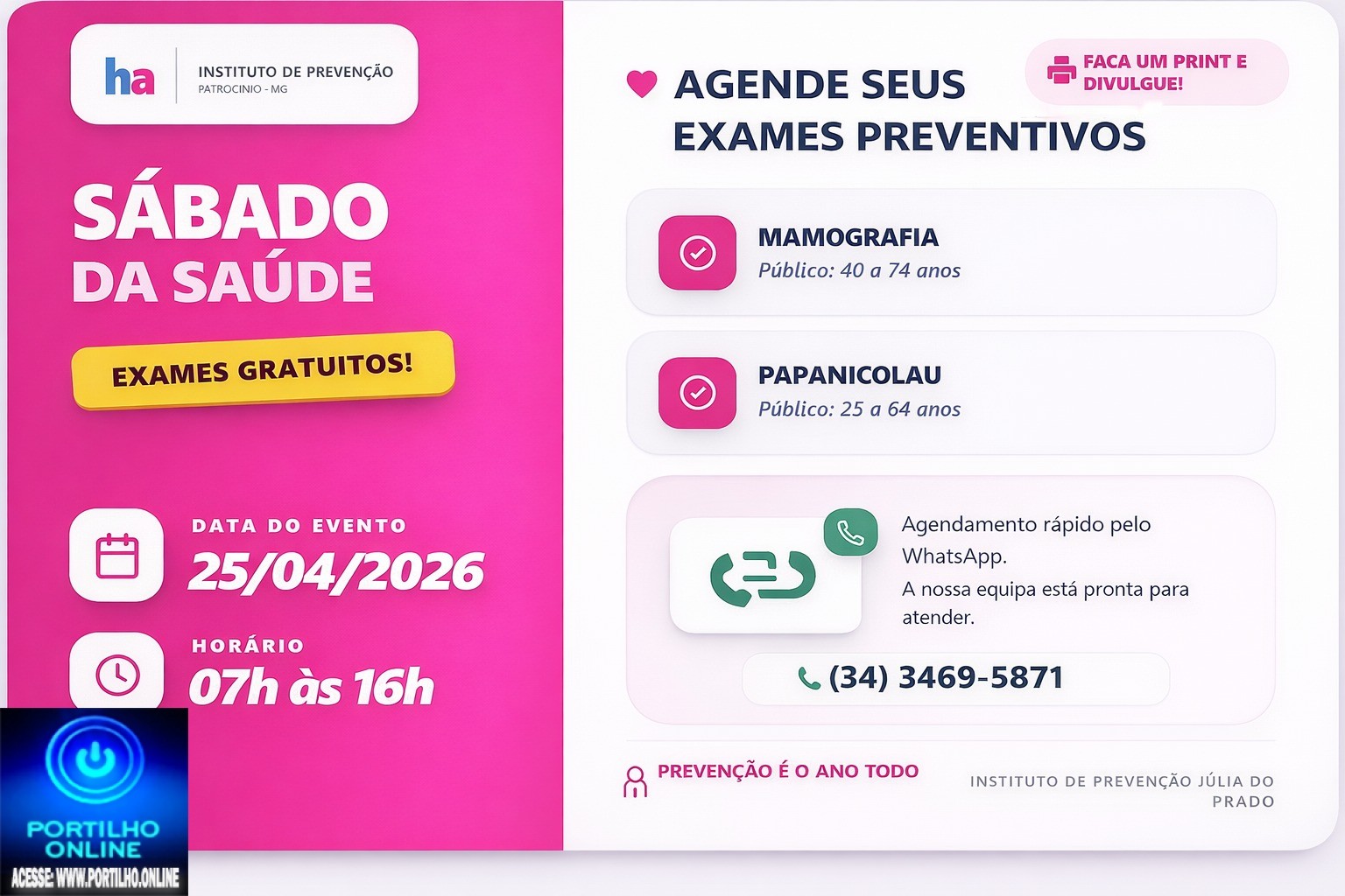 👉🏻🫴🏻🤝👏🏻🙌🏻🩺🩻Hospital de câncer de Patrocinio informa… Exames gratuito. Dia: 25/04)26