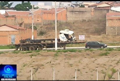 A carreta está estacionada há meses na Avenida Divino Gonçalves de Oliveira, entre os dois postos Ipiranga e o bairro Morada Nova, às margens do córrego do Dieró, próximo à ponte que dá acesso ao bairro Enéias.