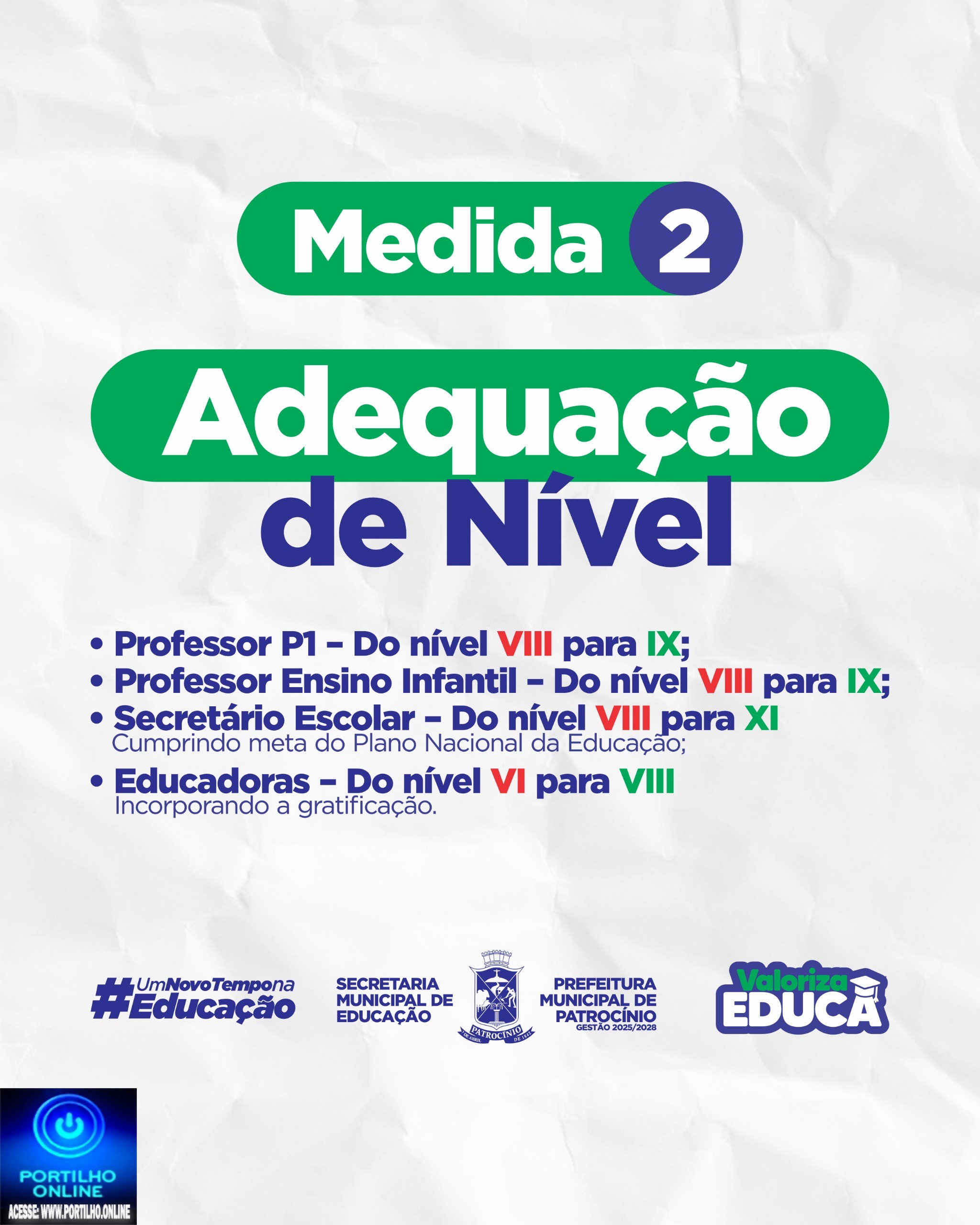 • Professores P1 e da Educação Infantil passam do nível VIII para IX.