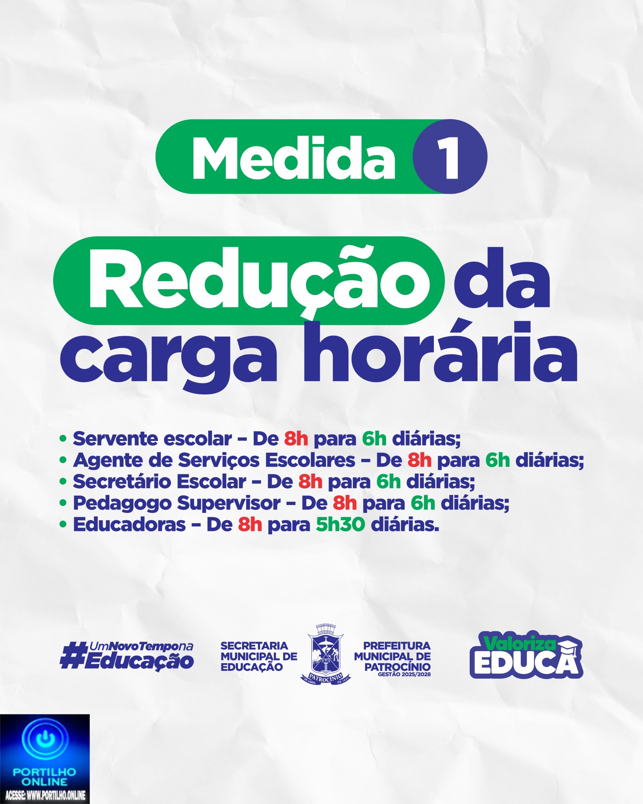 • Serventes escolares, agentes de serviços escolares, secretários e pedagogos supervisores terão a jornada reduzida de 8 para 6 horas diárias.