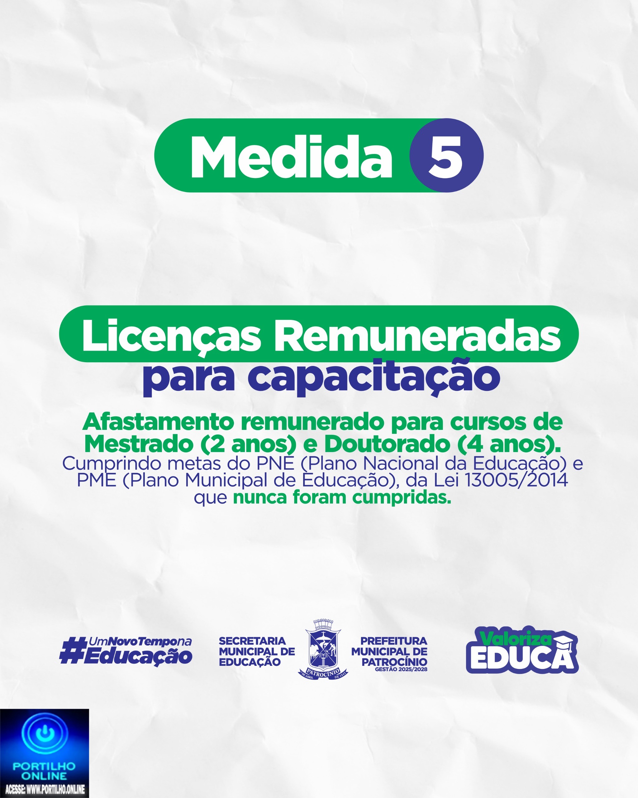 • Afastamentos para cursos de Mestrado (2 anos) e Doutorado (4 anos), atendendo às metas do PNE e do Plano Municipal de Educação.