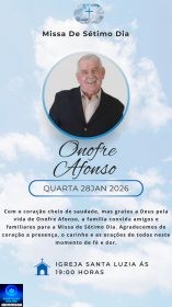 👉📢⛪🕍💒MISSA DE 7 (sétimo)👉🙌😪⚰🕯🙏A família do Sr. Onofre Afonso,  agradece,e comunica a realização da Missa de Sétimo dia