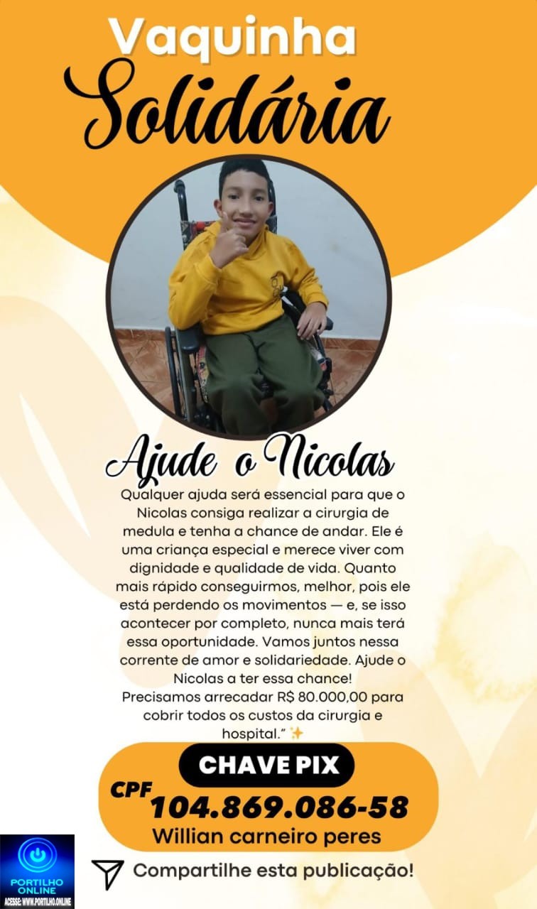 Estamos fazendo uma campanha em prol de uma cirurgia q o Nicolas precisa fazer na medula, essa cirurgia é a única chance que ele tem de um dia poder andar.