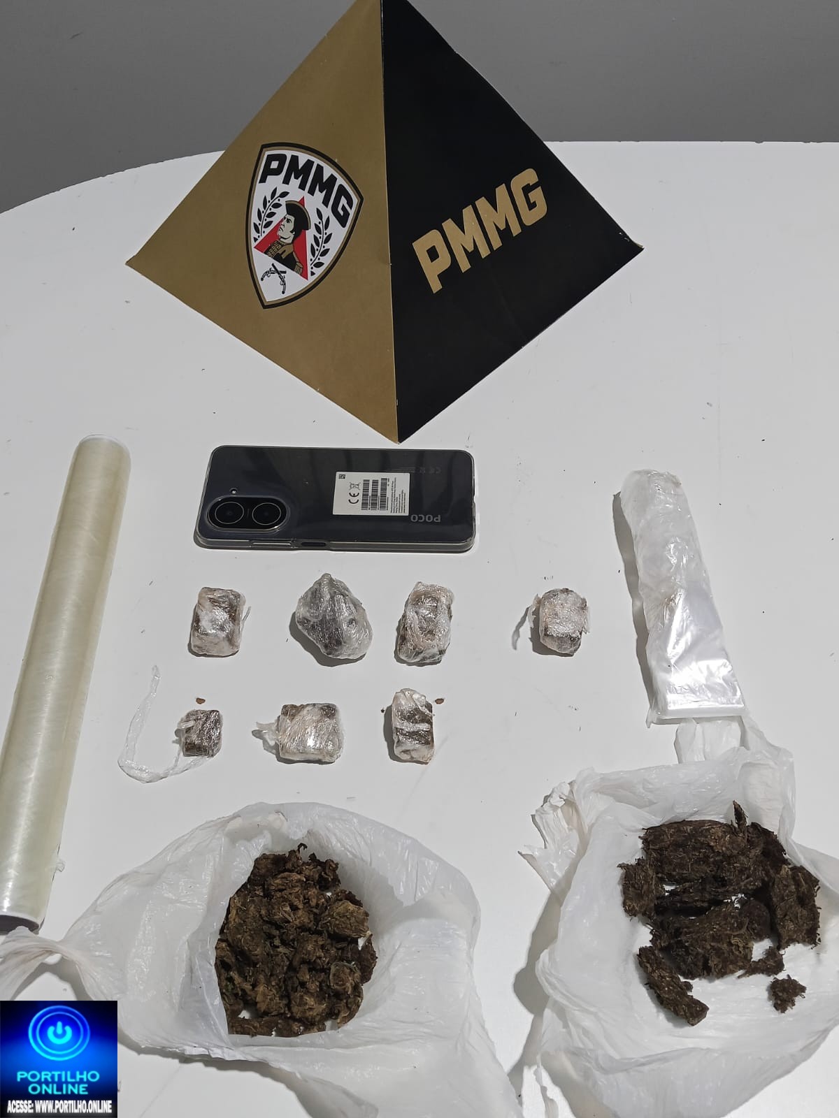 Foi montada então uma Operação Policial, sendo o autor abordado nas proximidades de um posto de combustível. No momento da abordagem, o indivíduo tentou dispensar dois tabletes de substância análoga à maconha, os quais foram prontamente localizados pelos militares.