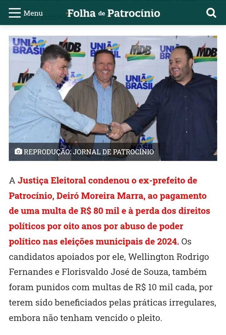 A Folha de Patrocínio não cria fatos. Publica decisões, registra documentos, noticia o que é público. Não inventa inelegibilidade; informa decisões da Justiça Eleitoral. Não fabrica condenações; noticia sentenças. Não levanta suspeitas ao acaso; reproduz questionamentos que ecoam na cidade há anos e permanecem sem respostas.